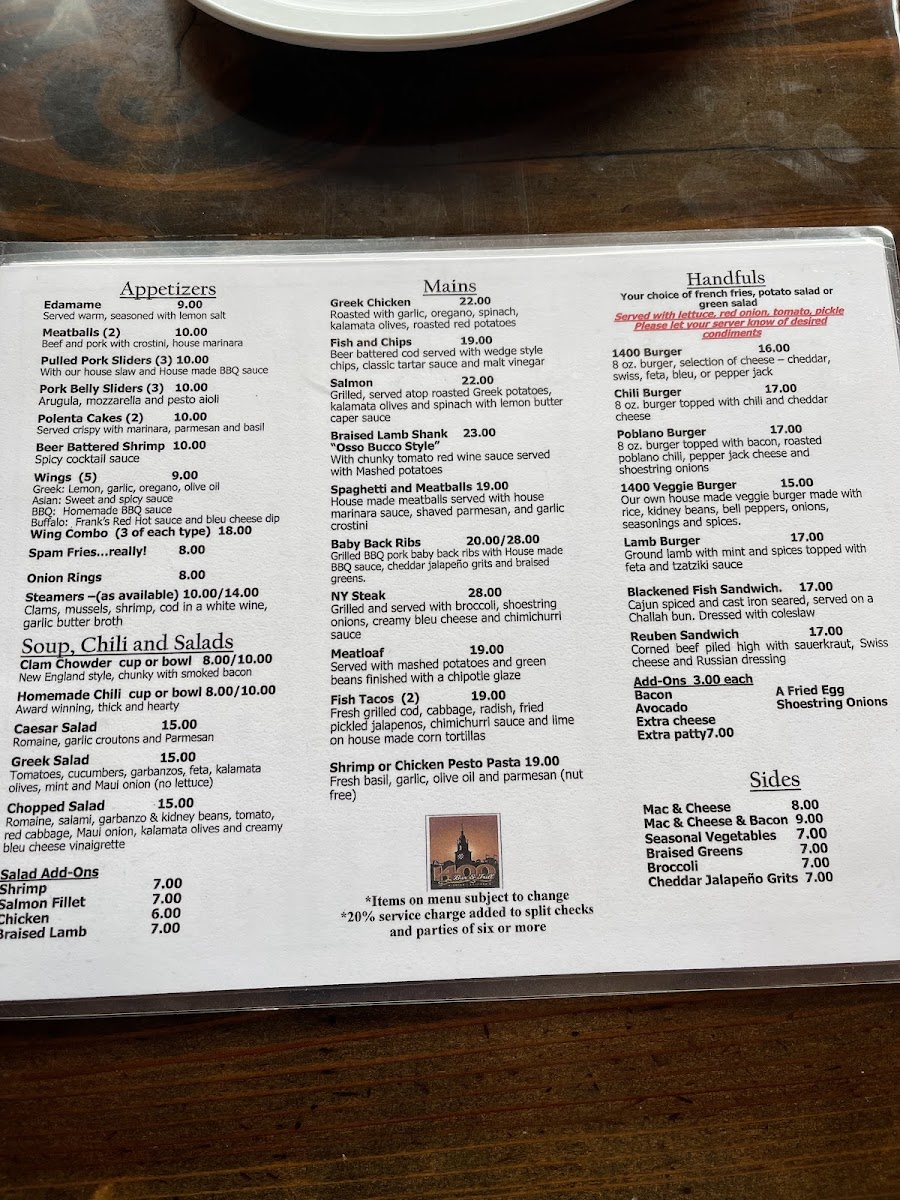 Whether you’re looking for a casual bite after a long day or a lively gathering spot for game day, 1400 Bar & Grill delivers. As user David Evans noted, the food is consistently good, making it the goto spot for a tasty meal.